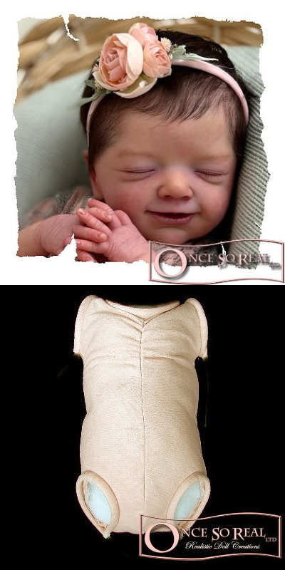 Hochwertiges Rebornset der Deutschen Künstlerin Olga Auer. Real Touch Vinyl, bestehend aus Kopf (ohne Augen), Vollvinyl (1/1) Armen und Vollvinyl (1/1) Beinen sowie einem passende Flanellkörper.