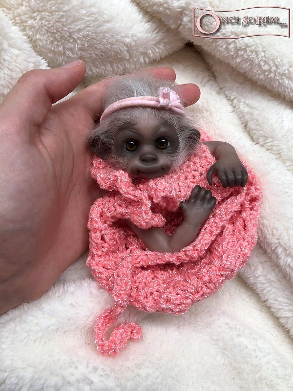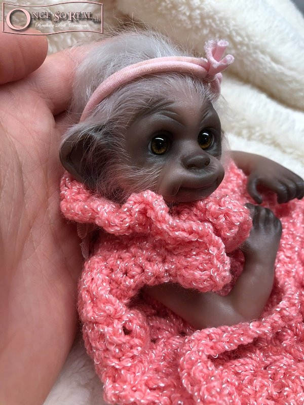 Alle Modelle von Yulia Shaver werden mit viel Liebe zum Detail ausmodelliert, mit vielen süßen Grübchen und Speckfältchen und dem charakteristischen Neugeborenen-Ausdruck der Künstlerin, der sie unverwechselbar macht. Bonnie ist eines von zwei Schimpansen-Babys, die Amy modelliert hat. Sicherlich wird es auch für euch eine Freude sein, diese beiden Äffchen zum Leben zu erwecken!
