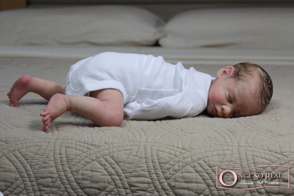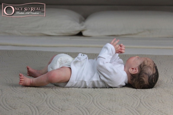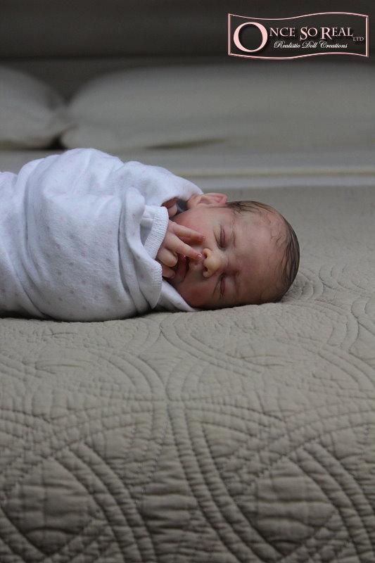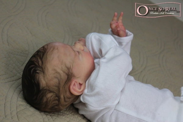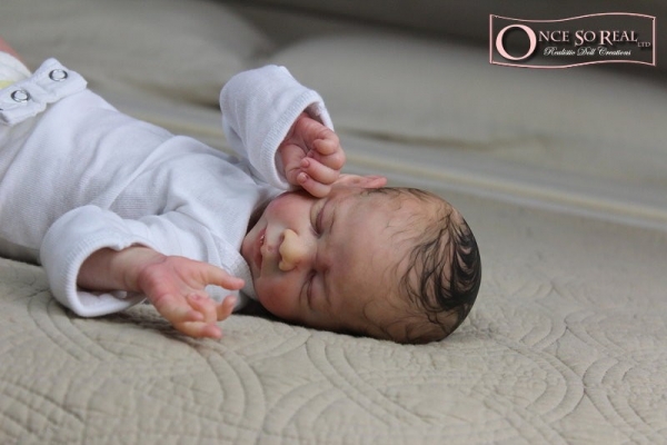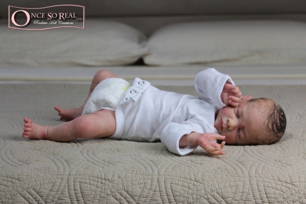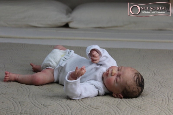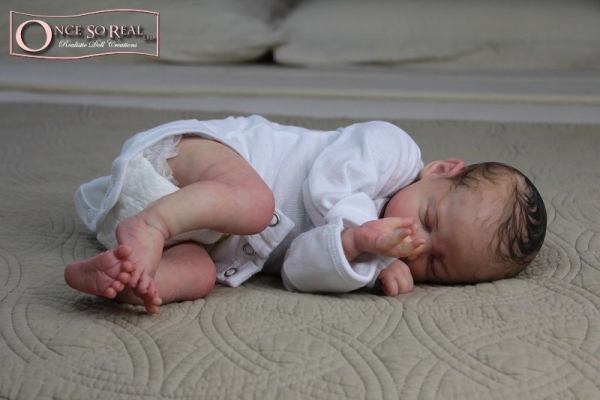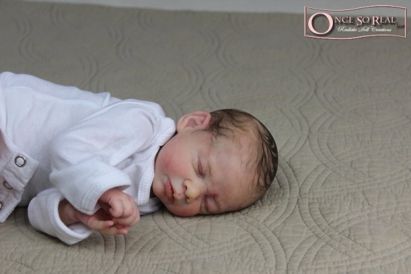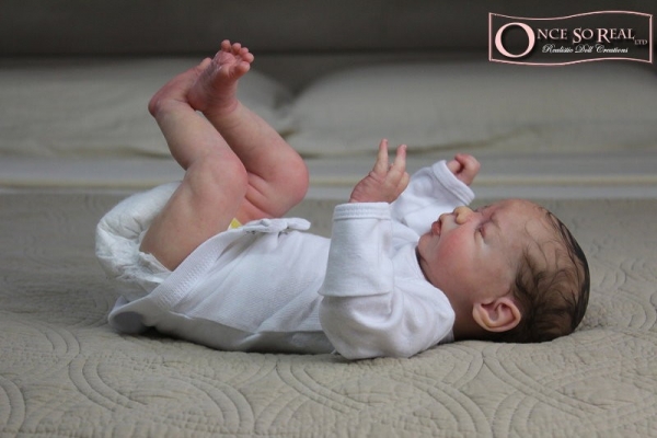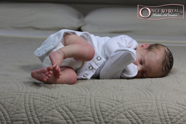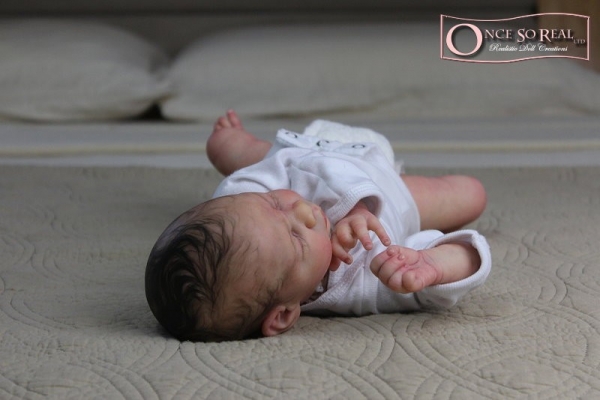 Hochwertiges Rebornset der Australischen Künstlerin Mina Torquati. Real Skin Vinyl, bestehend aus Kopf (ohne Augen), langen (3/4) Armen und Vollvinyl (1/1) Beinen sowie einem passenden Flanellkörper.