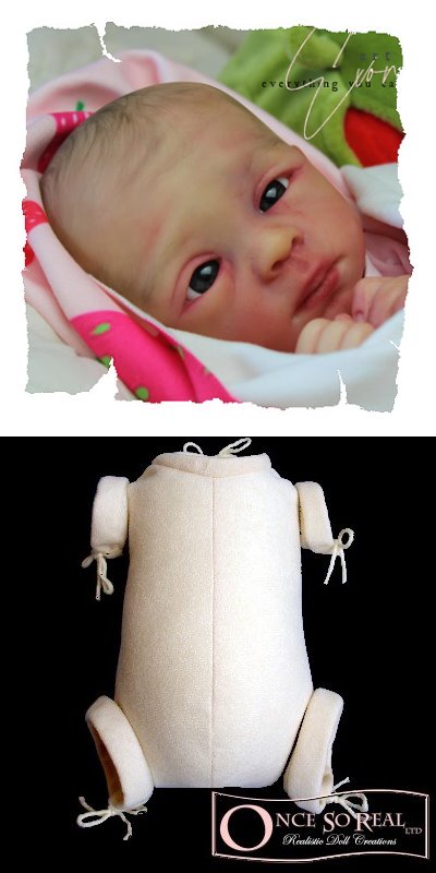 Hochwertiges Rebornset der Amerikanischen Künstlerin Marita Winters. Real Touch Vinyl, bestehend aus Kopf (ohne Augen), Vollvinyl (1/1) Armen und Vollvinyl (1/1) Beinen sowie einer passenden Bauchplatte und einem passenden Flanellkörper.