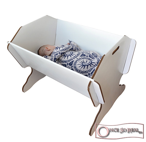 Hier stellen wir euch eine exklusive Designer-Papp-Wiege vor, die für echte Babys entwickelt wurde und mit mehreren Design-Awards ausgezeichnet ist. Es handelt sich um ein extrem stabiles Kinderbettchen mit Standfuß in Wiegenform. Die Wiege steht jedoch fest, ohne zu wiegen. Da sie extrem schnell und platzsparend zusammen gesteckt und wieder auseinander genommen werden kann, eignet sie sich auch besonders gut für Ausstellungen und Präsentationen. Die Oberfläche ist weiß und kann von euch ganz nach Lust und Laune mit eurem Logo versehen oder anderweitig farblich gestaltet werden. Hier sind eurer Fantasie keine Grenzen gesetzt! Die stabile Pappe ist aus Recycling-Karton und mit einer Feuerschutzschicht ummantelt. Ihr benötigt für den Aufbau keinerlei Werkzeuge!