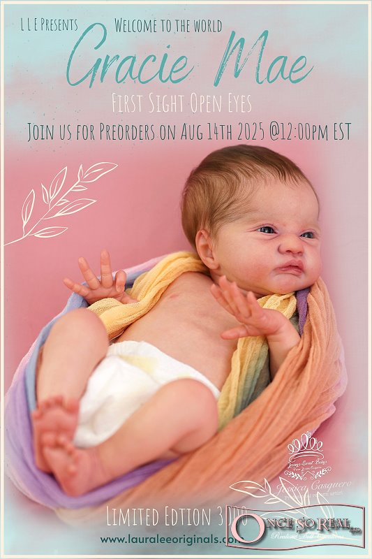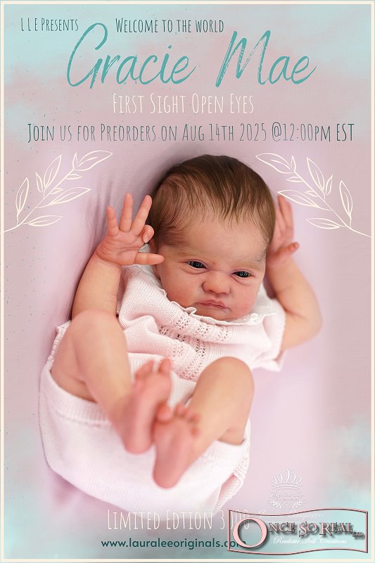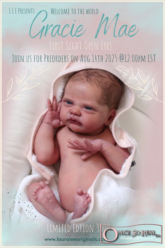 Alle Modelle von Laura Lee Eagles werden mit viel Liebe zum Detail ausmodelliert, mit vielen süßen Grübchen und Speckfältchen und dem charakteristischen Neugeborenen-Ausdruck der Künstlerin, der sie unverwechselbar macht. Laura Lee Eagles hat sich bereits nach kurzer Zeit mit ihren realistischen Neugeborenen einen Namen gemacht! Sicherlich wird es auch für euch eine Freude sein, diese kleinen Schönheiten zum Leben zu erwecken!