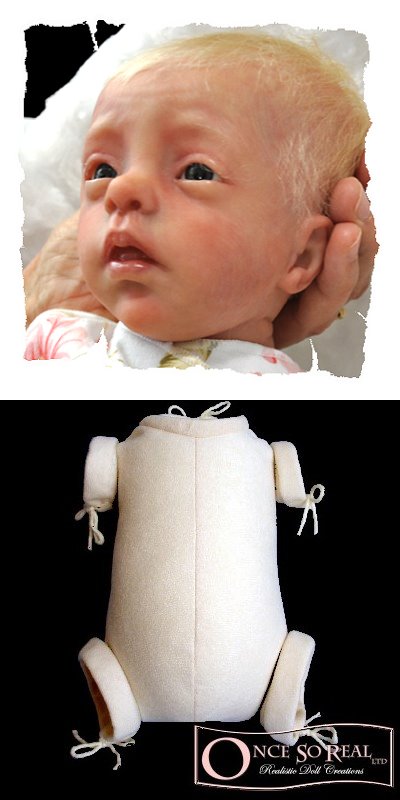 Hochwertiges Rebornset der Amerikanischen Künstlerin Marita Winters. Real Touch Vinyl, bestehend aus Kopf (ohne Augen), Vollvinyl (1/1) Armen und Vollvinyl (1/1) Beinen sowie einer passenden Bauchplatte und einem passenden Flanellkörper.