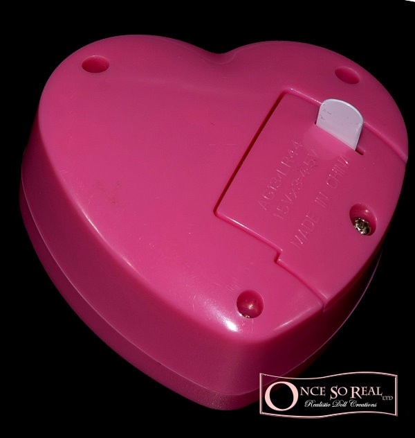 Herzschlag-Simulator in Herzform aus stabilem rotem Kunststoff. Batteriebetrieben (Batterie enthalten), mit Ein- und Ausschaltknopf. Für ein realistisches Herzschlaggefühl beim Rebornbaby.
