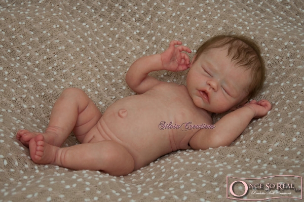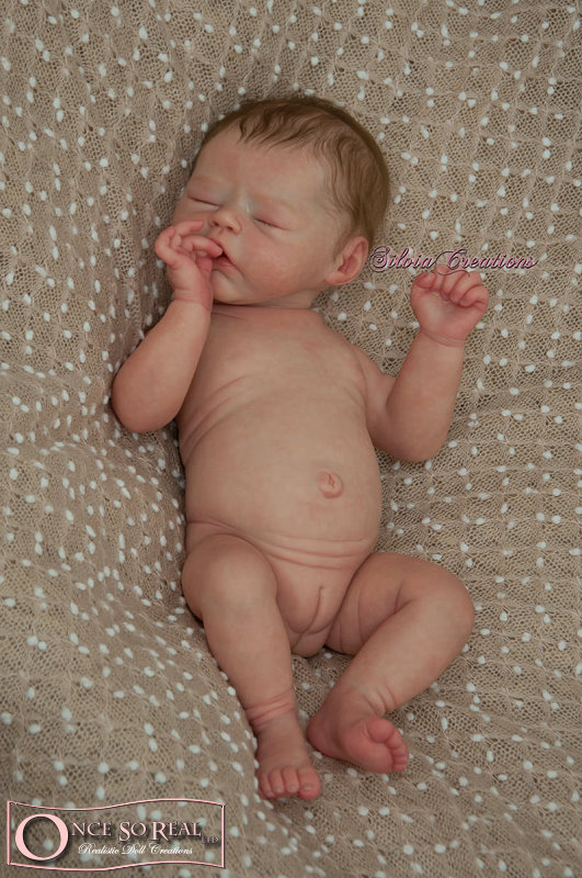 Die Arme und Beine von Hope asleep sind lang modelliert, so dass das Baby später auch kurze Kleidung tragen kann. Das Vinyl ist hellbeige und sehr weich, so dass es sehr gut gefärbt und auch leicht gerootet werden kann. Es ist translucent und somit für die Innenfärbung geeignet.