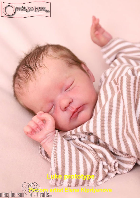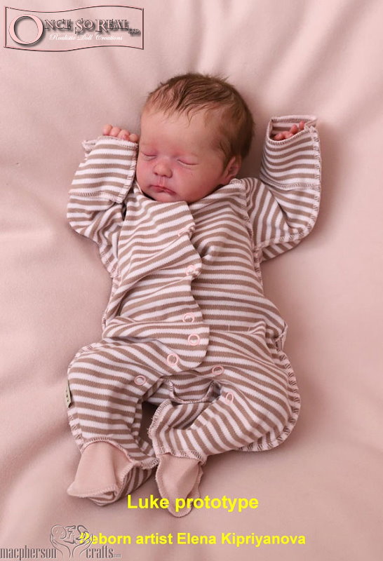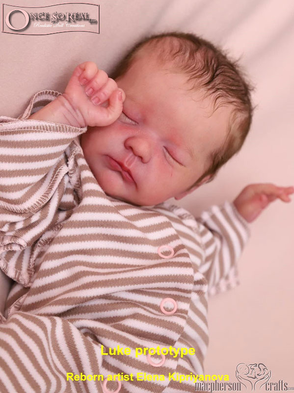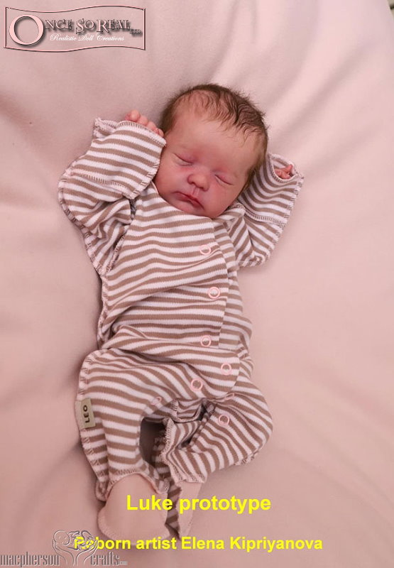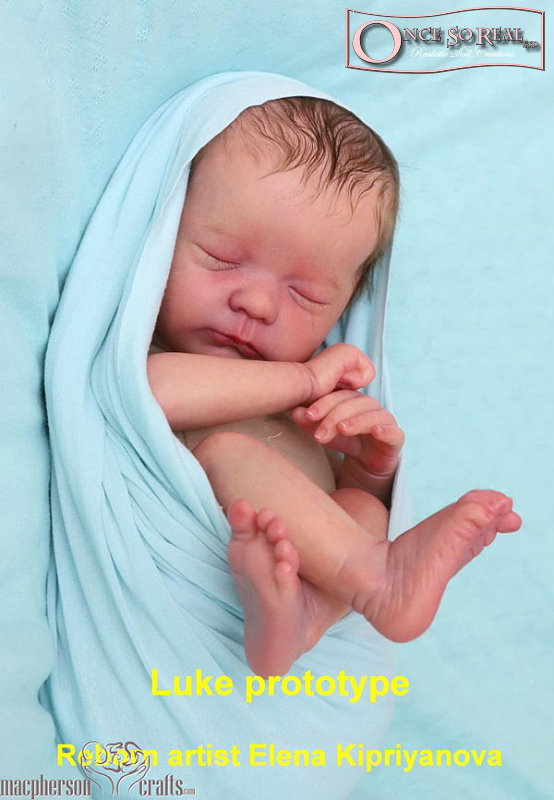 Die Arme und Beine von Luke sind lang modelliert, so dass das Baby später auch kurze Kleidung tragen kann. Das Vinyl ist hellbeige und sehr weich, so dass es sehr gut gefärbt und auch leicht gerootet werden kann. Es ist translucent und somit für die Innenfärbung geeignet.