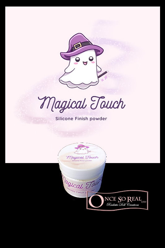 Tragt zunächst eine letzte dünne Schicht klares Silikon auf das gesamte Baby auf. Tupft diese Silikon-Schicht mit einem Schwämmchen ein wenig ab. Nehmt dann einen großen Blushing- oder Make-Up-Pinsel und tragt das Magical Touch Matting Powder gleichmäßig und dünn auf die kompletten Körperteile auf. Lasst danach die letzte Silikonschicht mit dem Matting Powder vollständig trocknen. Danach könnt ihr die Teile mit etwas Wasser feucht abwischen und bei Bedarf die Veredelung mit dem Powder stellenweise wiederholen.