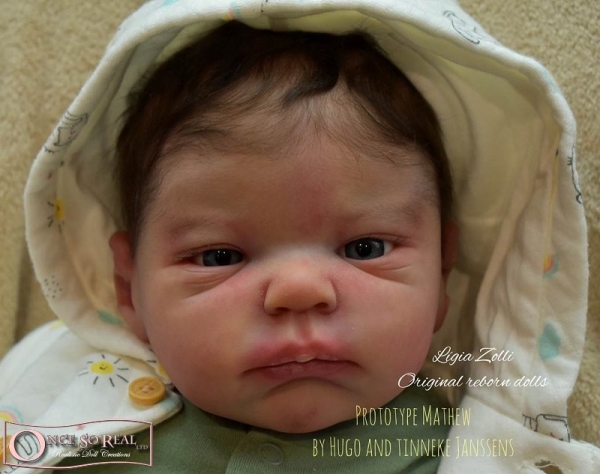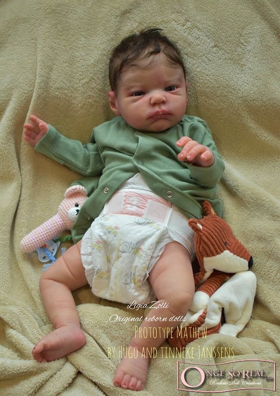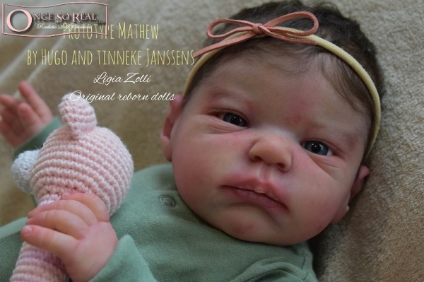 Die Arme und Beine von Mathew sind lang modelliert, so dass das Baby später auch kurze Kleidung tragen kann. Das Vinyl ist hellbeige und sehr weich, so dass es sehr gut gefärbt und auch leicht gerootet werden kann. Es ist translucent und somit für die Innenfärbung geeignet.