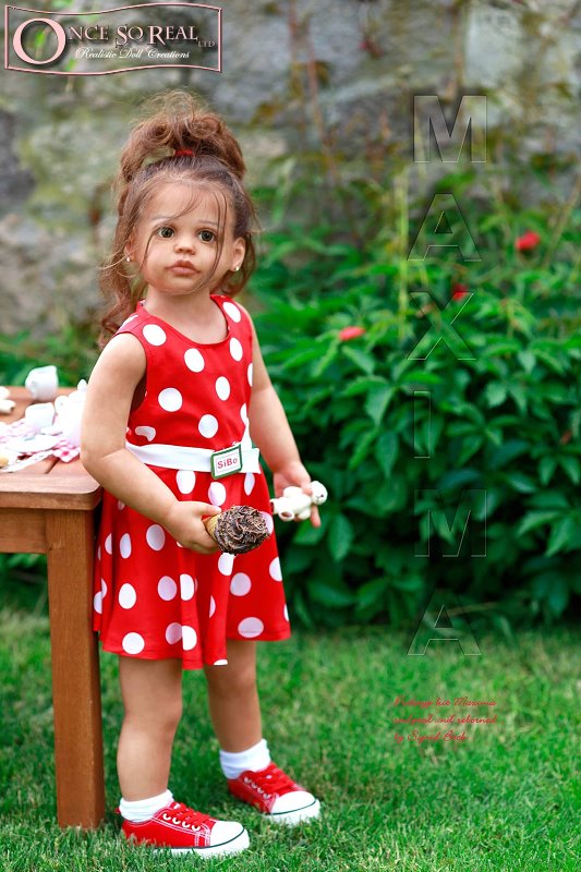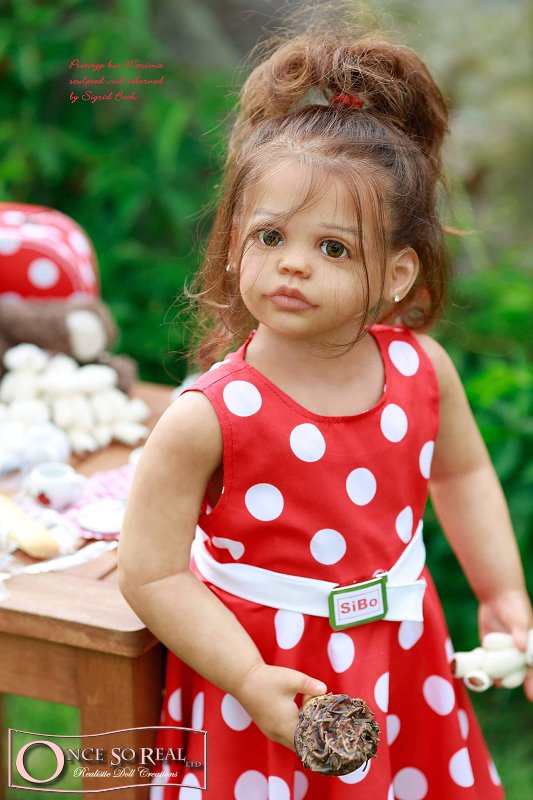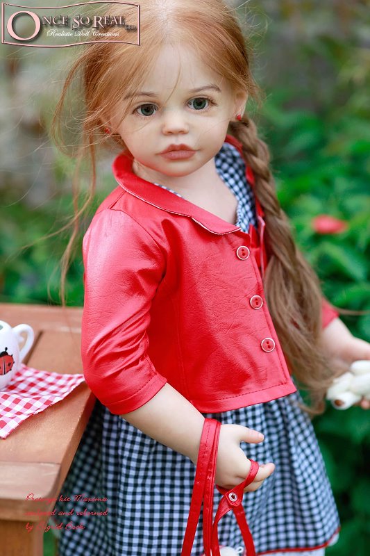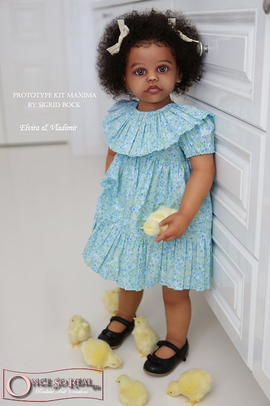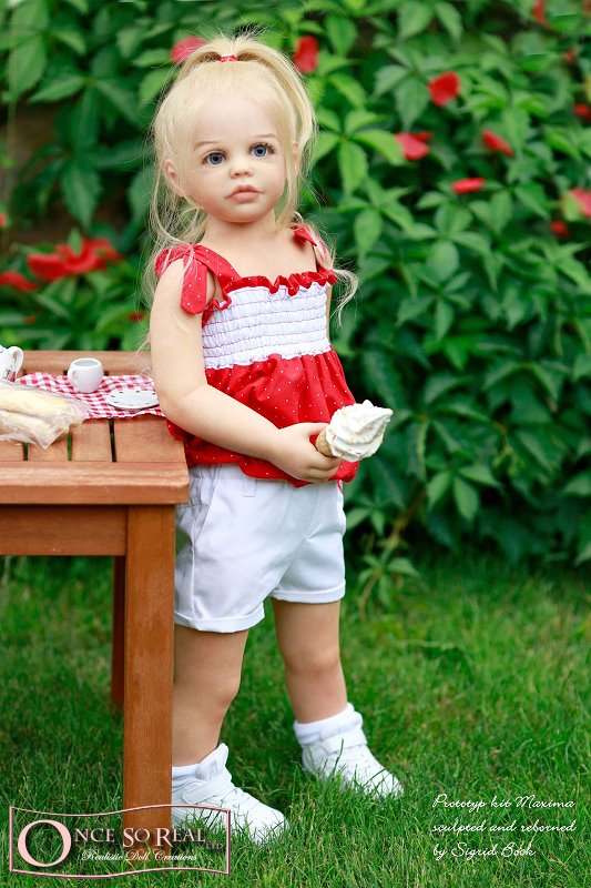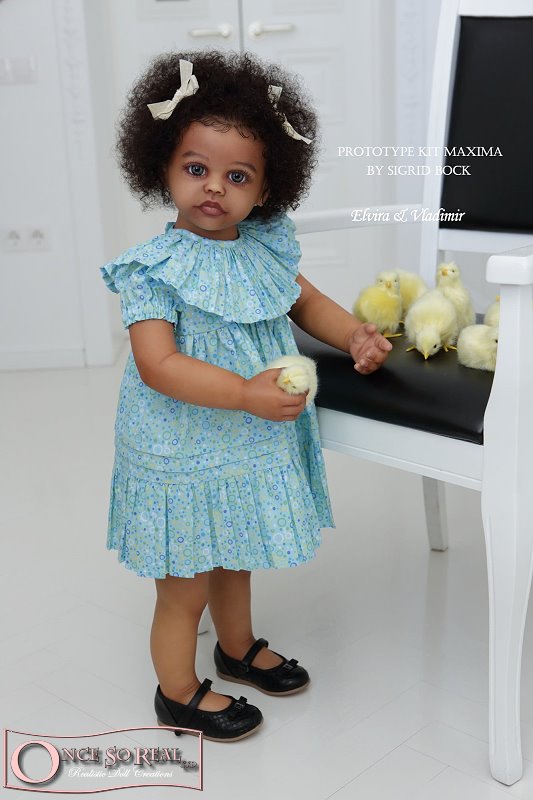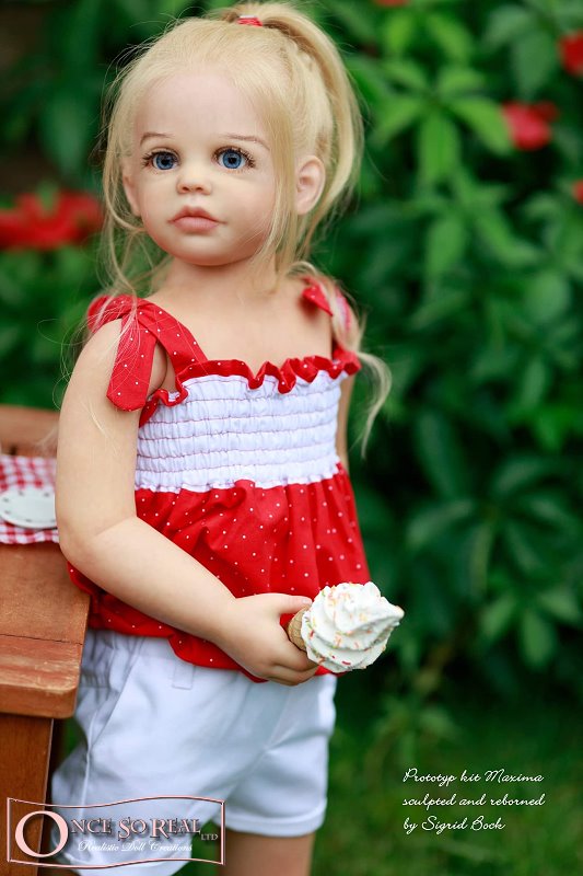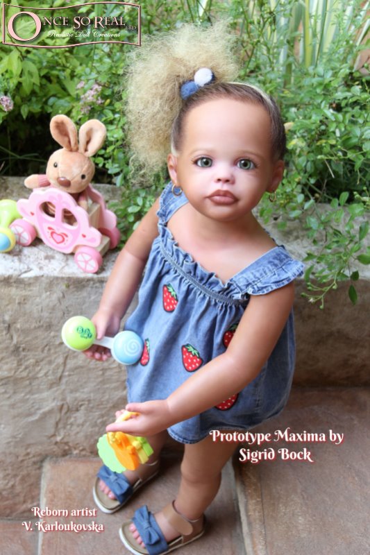 Die Arme und Beine von Maxima sind lang modelliert, so dass der Toddler später auch kurze Kleidung tragen kann. Das Vinyl ist hellbeige und hautähnlich weich, so dass es sehr gut gefärbt und auch gerootet werden kann. Es ist translucent und somit für die Innenfärbung geeignet.