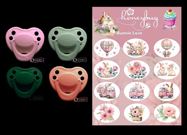 Hier bieten wir euch ein ganz spezielles Bundle-Set zum Vorteilspreis an: Ihr erhaltet einen Bogen Sprinkles Aufkleber gratis und dazu vier farblich zu den Aufklebern passende Honey Bug Schnuller!