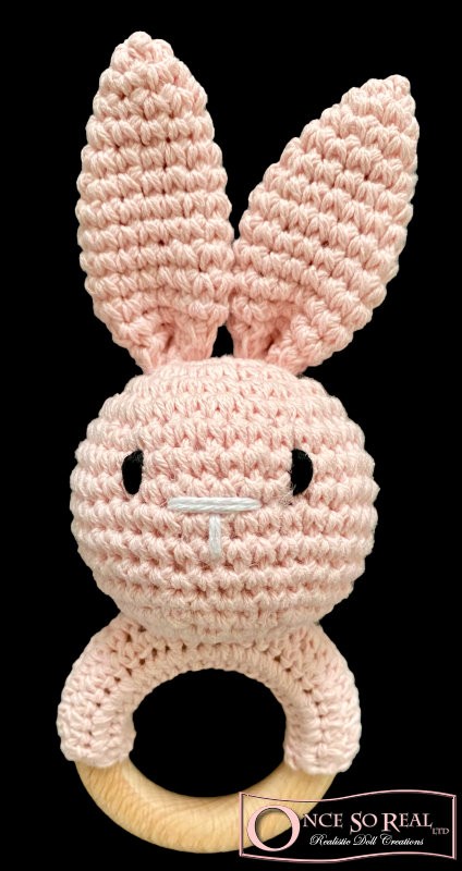 Dieses niedliche Häkel-Rasseltierchen haben wir für kleine Jungen oder Mädchen im Angebot. Die Farben lassen sich sehr schön mit nahezu jeder Babykleidung kombinieren. Der Hase ist aus feinstem Garn gehäkelt und um einen Holzring gespannt. Im Inneren des Kopfes befindet sich eine kleine Rassel. Es ist ein schönes und unverzichtbares Accessoire für die Gestaltung von Reborn- und Silikon-Babys und eignet sich perfekt für eine realitätsnahe Präsentation!