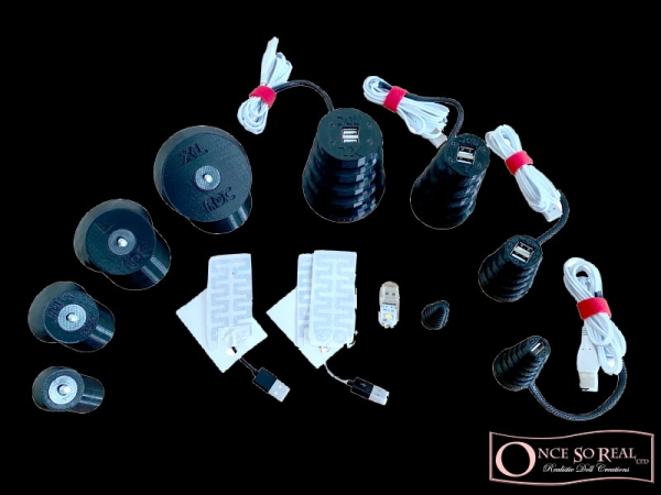 Dieser Reborn Doll Companion ist das ultimative Hilfsmittel, um euch die Arbeit an euren Rebornbabys zu erleichtern! Ganz gleich, ob ihr euer Baby rootet oder färbt, ihr könnt diese Arbeitsschritte mit dem RDC nun viel leichter gestalten. Enthalten in diesem Komplett-Set sind 4 Aufsätze in unterschiedlichen Größen sowie vier weitere abgewinkelte Befestigungen, auf die ihr unterschiedliche Vinyl-Teile in allen gängigen Größen aufstecken könnt, um sie besser färben und rooten zu können. Auch ein paar einfache und doppelte LED-Heat-Pads sind im Set enthalten. Diese erwärmen den Kopf von Innen für ein leichteres Rooting. Ebenfalls findet ihr in dem Set ein LED Leuchtmittel, welches das Köpfchen bei Bedarf von Innen ausleuchtet, damit ihr eure Rootingarbeit besser sehen könnt. Durch die USB-Zugänge könnt ihr die Heat Pads und das Leuchtmittel gleichzeitig anschließen.