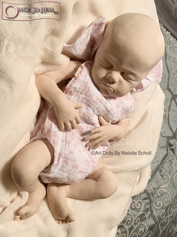Alle Modelle von Natalie Scholl werden mit viel Liebe zum Detail ausmodelliert, mit vielen süßen Grübchen und Speckfältchen und dem charakteristischen Ausdruck der Künstlerin, der sie unverwechselbar macht. Die Kanadierin hat ein herausragendes Talent für detaillierte Neugeborenen-Modelle, so dass einem angesichts ihrer Babys der Atem stockt. Sicherlich wird es auch für euch eine Freude sein, diese kleinen Schönheiten zum Leben zu erwecken!