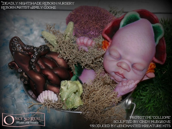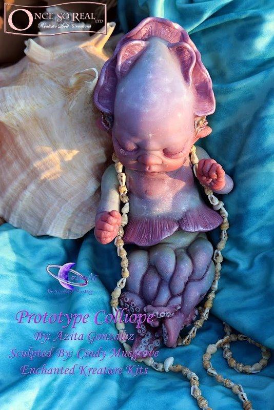 Hochwertiges Tintenfisch Rebornset der Amerikanischen Künstlerin Cindy Musgrove. Real Touch Vinyl, bestehend aus Kopf (ohne Augen), Vollvinyl (1/1) Armen sowie einen passenden Torso mit innenliegendem Flanellkörper und einem Tintenfisch-Schwanzstück.