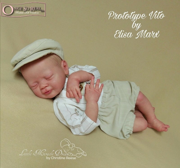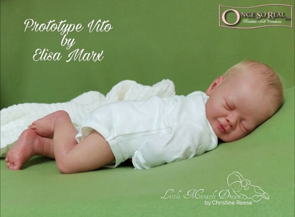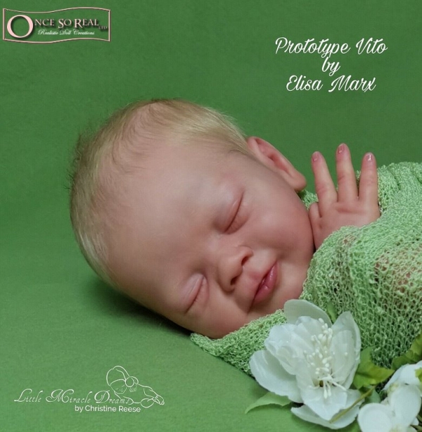 Die Arme und Beine von Vito sind lang modelliert, so dass das Baby später auch kurze Kleidung tragen kann. Das Vinyl ist hellbeige und weich, so dass es gut gefärbt und auch gerootet werden kann. Es ist translucent und somit für die Innenfärbung geeignet.