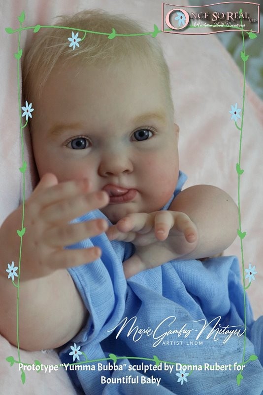Die Arme und Beine von Yumma Bubba sind lang, so dass das Baby später auch kurze Kleidung tragen kann. Das Vinyl ist hellbeige und sehr weich, so dass es sehr gut gefärbt und auch leicht gerootet werden kann. Es ist translucent und somit für die Innenfärbung geeignet.