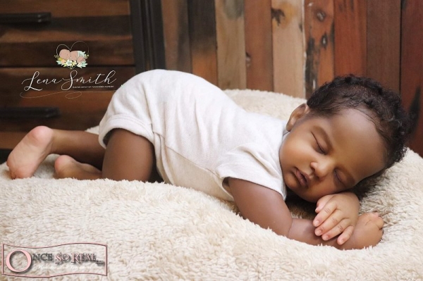 Die Arme und Beine von Zain sind lang modelliert, so dass das Baby später auch kurze Kleidung tragen kann. Das Vinyl ist hellbeige und sehr weich, so dass es sehr gut gefärbt und auch leicht gerootet werden kann. Es ist nicht translucent und somit nicht für die Innenfärbung geeignet.